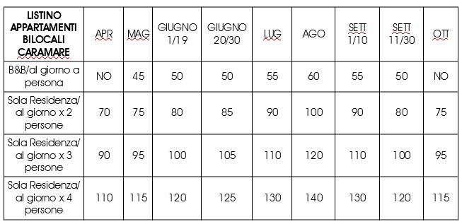 Appartamenti bilocali Caramare (4 posti letto max)