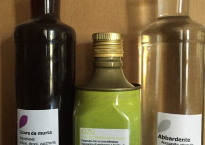Una galleria di alcuni nostri prodotti, che annualmente prepariamo per il servizio durante la stagione ma anche per la vendita al dettaglio in azienda. Un profumato olio extravergine, formaggio pecorino, liquori di mirto e di pompia; prepariamo Sa pompia intrèa, e tanto altro.